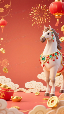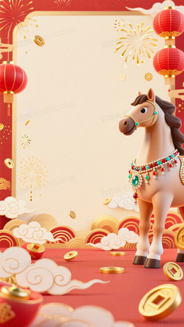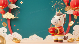 3DQ版卡通中国新年主题插画背景