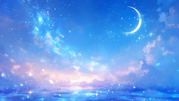 > 蓝色唯美星空月亮背景