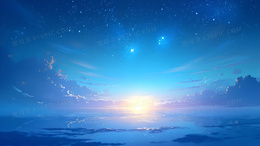 蓝色夜晚梦幻唯美星空手绘插画背景