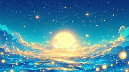 蓝色梦幻唯美星空云朵月亮手绘插画背景