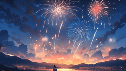> 夏天夜空的庆典烟花插画