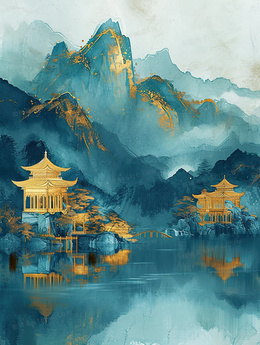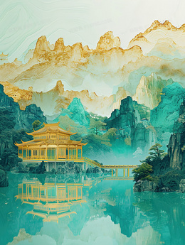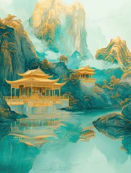 当前位置: 图精灵 > 背景图库 > 插画 > 青绿色中国风鎏金山水建筑插画