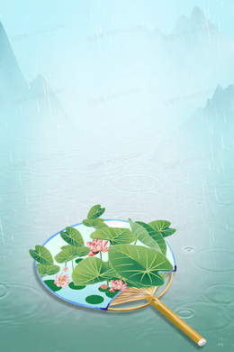 绿色荷花扇子节气背景图