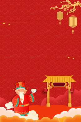 小年红色喜庆灶王爷祭灶背景