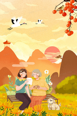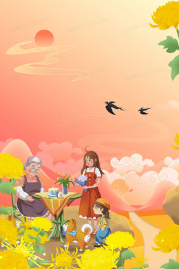 复古中国风简约重阳节传统习俗赏菊敬老爱老背景