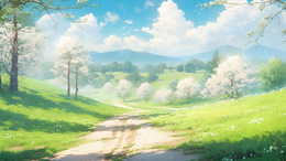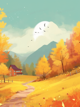当前位置: 图精灵 > 背景图库 > 插画 > 秋天金色树林里草地上的小路风景插画