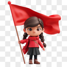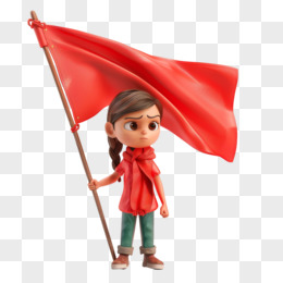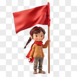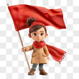 3D立体人物举着红旗免抠元素