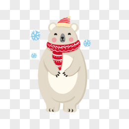 3D卡通冬季穿棉服带围脖的小白熊免抠元素