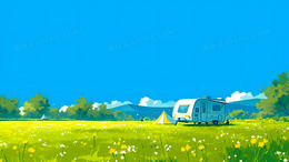 春天清新草坪树蓝天白云背景