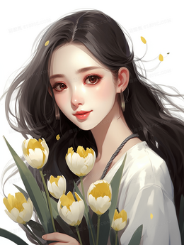 当前位置: 图精灵 > 背景图库 > 插画 > 手捧鲜花的长发美丽女孩插画