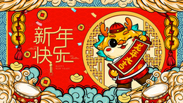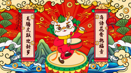 > 国潮风恭喜新春龙年小龙IP恭贺新春插画