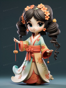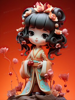 当前位置: 图精灵 > 背景图库 > 插画 > 卡通中国风少女3D人物手办玩具插画