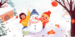 当前位置: 图精灵 > 背景图库 > 插画 > 大雪男孩堆雪人手绘插画