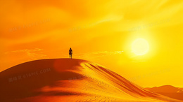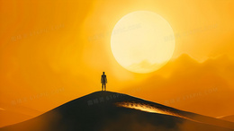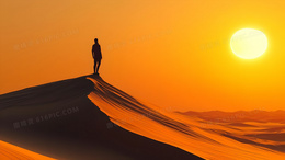 黄昏时分一个剪影的人物站在沙丘的顶端背景