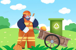 环卫工人在草坪上搞卫生手绘女性职业组图插画