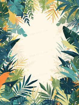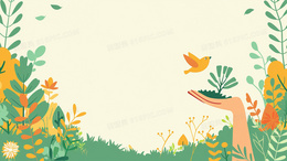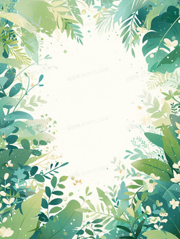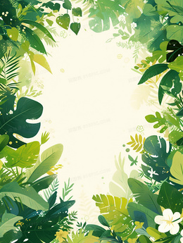> 绿色植物边框可爱卡通背景