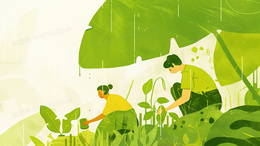 > 下雨天植树种植卡通人物背景