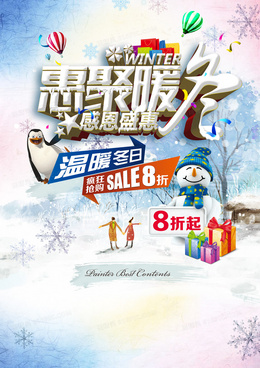 暖冬聚惠矢量海报