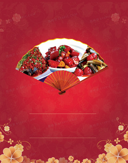 中国风扇子红色餐饮广告饭店广告