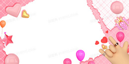 黏土C4D粉色爱心合成边框背景