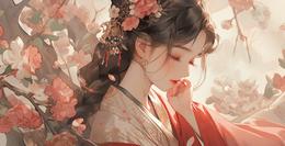 桃红戏曲古装美女桃花红色背景