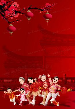 中国风元宵团圆红色背景素材
