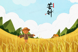 卡通稻草人麦田芒种节气插画