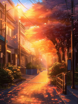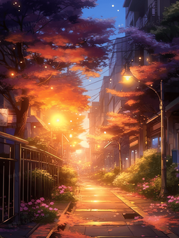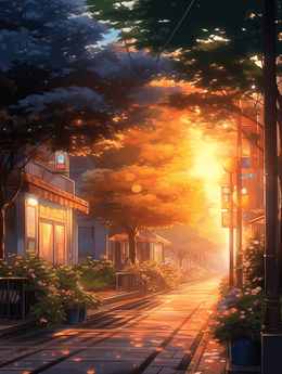黄昏夕阳日落风景唯美插画