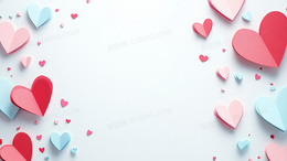 红色浪漫剪纸风七夕情人节简约爱心背景