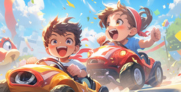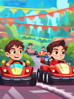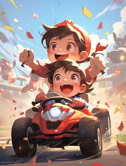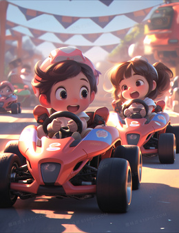 当前位置: 图精灵 > 背景图库 > 插画 > 可爱卡通儿童开心的玩卡丁车创意插画
