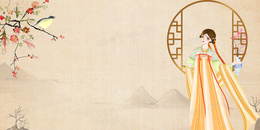 > 中国风汉服女子插画背景