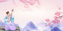 中国风汉服女子弹奏音乐背景