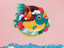 虎年福到可爱卡通福字合成背景