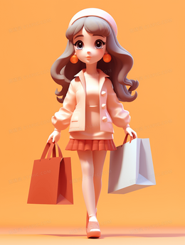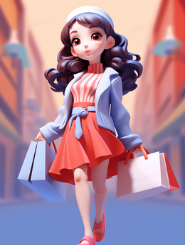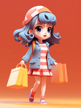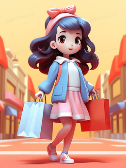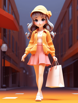 一个拿着购物袋逛街的可爱女孩插画