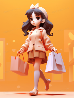 > 打着黄色雨伞穿着雨衣的小女孩插画