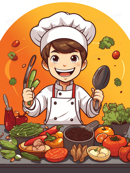 当前位置: 图精灵 > 背景图库 > 插画 > 丰富的食材和烹饪的厨师卡通插画