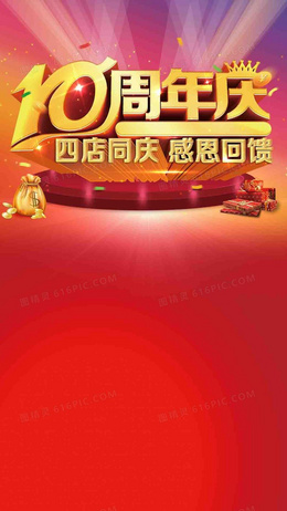 红色激情渐变10周年庆背景