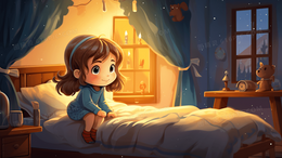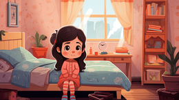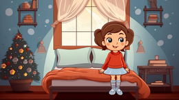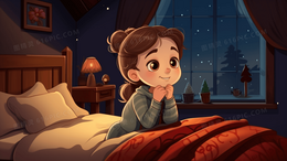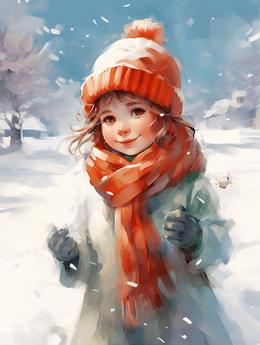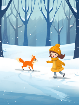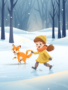 冬季在山林里溜冰的小女孩和小狐狸插画