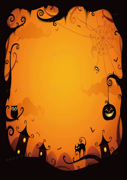 黄色剪影万圣节舞会卡通海报