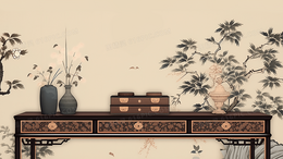 书房书桌上摆放整洁的电脑书本简约商务插画