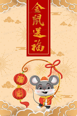 2020鼠年新春贺年卡剪纸风喜庆背景