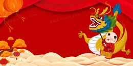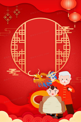 红色中国风舞龙二月二龙抬头背景