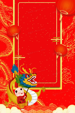 红色喜庆中国风灯笼二月二龙抬头舞龙背景