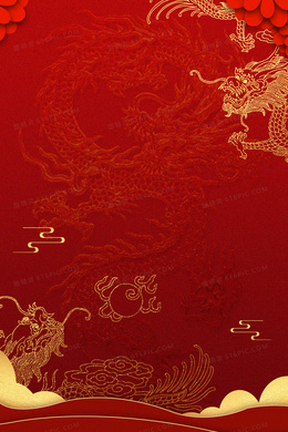 红色喜庆中国风龙抬头背景