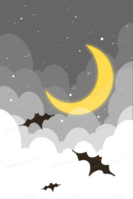 灰色万圣节天空南瓜卡通插画背景手绘素材