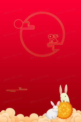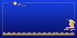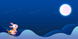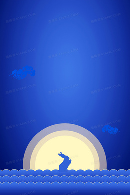 蓝色唯美简约大气中秋节玉兔赏月背景