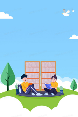 蓝色简约大气手绘扁平卡通读书朗诵背景