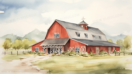 彩色乡村小屋田园风景插画