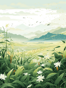 > 唯美绿色植物风景插画