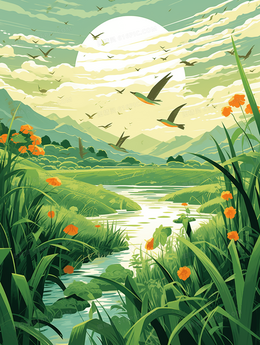 唯美绿色植物风景插画